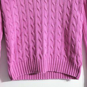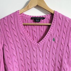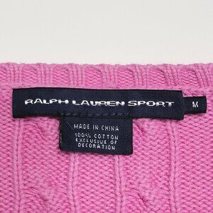 Ralph Lauren Sport Womens Cotton Cable Knit Sweater Size M Pink V-Neck Preppy