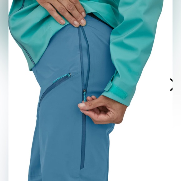 XL women’s Patagonia Stormstride pants in Sound Blue. (Style 29995). Purchased in store in the 2024 ski season and only worn once. Excellent condition, with some scuff marks around the cuffs, barely visible and will likely clean off. Some marks noted in pics around the ankle snow gaitors too, but completely functional.