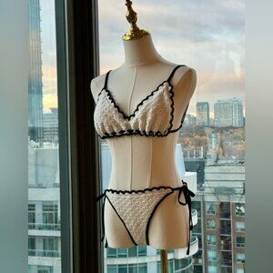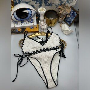 🆕 ZIMMERMANN 🧿 NWT Halliday Knit Scoop Bikini - Ivory/Black - Sz 2 - US 6 / 8