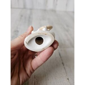 about 5.5 in tall by 1.5x2 in, does have crazing noted throughout, some yellowing of the rhinestone glue, couple marks overall one noted on the back of the right hand otherwise no other problems