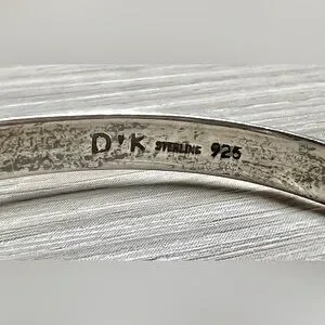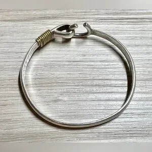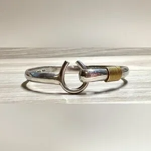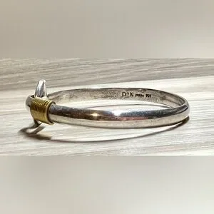 Vintage Designer Signed DK Sterling Silver & Brass Hook Bangle Bracelet