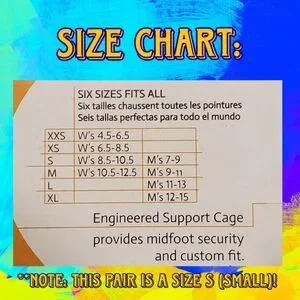 Size: S for Small (please view size chart in pictures). It translates to a Mens 7 and a Women's 8.5, but please view the size chart for more details because they fit more than one size, it's in a size range.