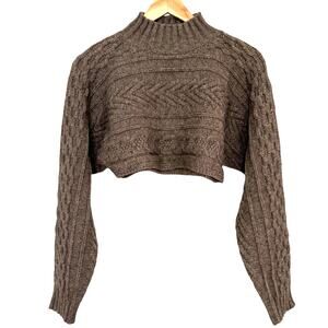 Superdown Women's Small Cable Knit Brown Ultra Cropped Sexy Cozy