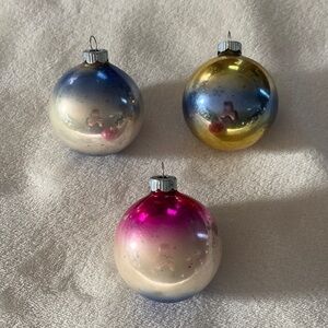 Vintage Shiny Brite Ombré Christmas ornaments Gold Silver Blue