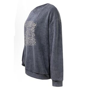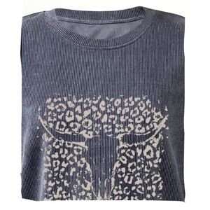 Women’s Gray Cow Skull Ribbed Pullover Sweatshirt NWT