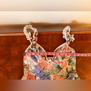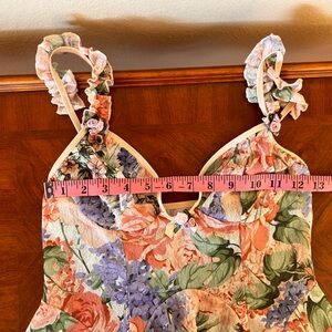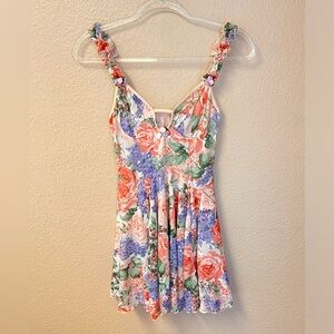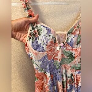 Floral Vintage Mesh Keyhole Ruffle Sleeve Strap 3D Flowers Babydoll Dress Size S