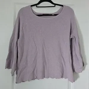 beautiful lavender color. scalloped hem and sleeves warm knitted sweater