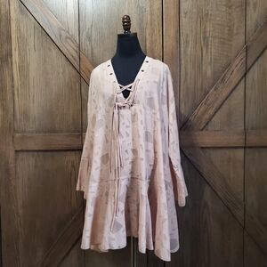 beautiful IRO dress featuring a soft, pale pink color with tiered details, long bell sleeves, and lace up V-neckline with a romantic bohemian style. size 38 or US small. Great condition lightly worn.