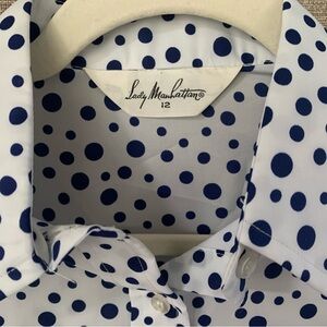 Lady Manhattan White Button Down with Blue Polka Dots - SZ 12