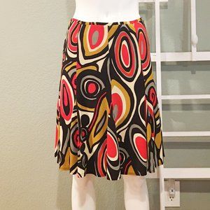 Fun and retro color combo of brown, gray, orange, mustard, and cream
