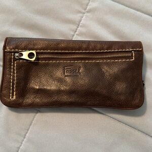 Fossil Wallet 3 Zip Pockets 1 Snap Pocket 18 Credit Card Slots Brown Leather