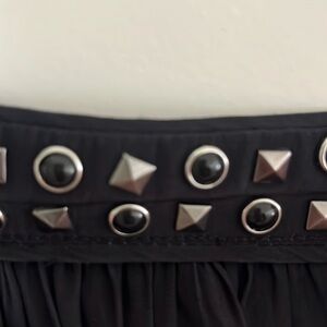 Ramy Brook Black Long Sleeve Top w/Black Metal Embellishment. Cut outs at shoulders. Elastic trim at back neckline