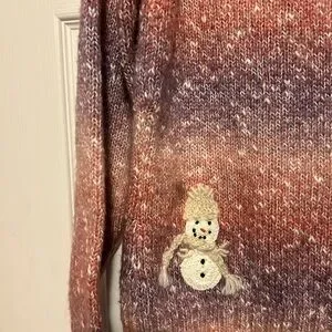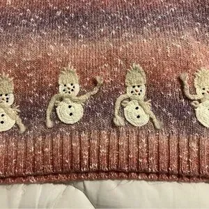 Talbots vintage Winter/Christmas sweater in shades of pink and white. Excellent condition, size XL, decorative snowmen in front and back, crew neck. Four buttons running from one shoulder, pit to pit = 21”, shoulder to hem = 24”. Fabric is 62% acrylic, 34% cotton & 4% other fibers, machine wash cold. NOTE: this sweater, in my opinion, runs small.