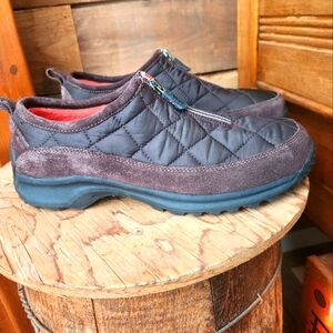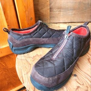 These are awesome Lands end womens hiking shoes! Previously owned but with hardly no wear seen. The soles have very little wear to them. Would be perfect to wear for a hike or even every day errands! They feature a round toe. Durable outsole. Slip on with a zipper closure! Lands end great quality!