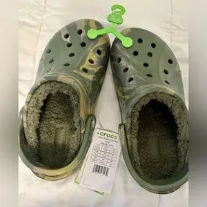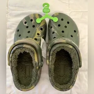 New with tags. Fur lined marbled army green crocs. Men, women or youth (big kid). M4W6