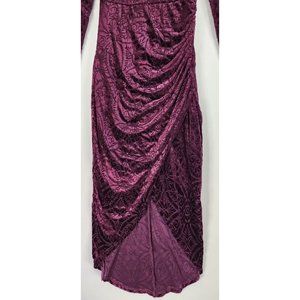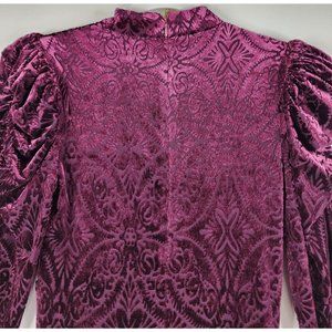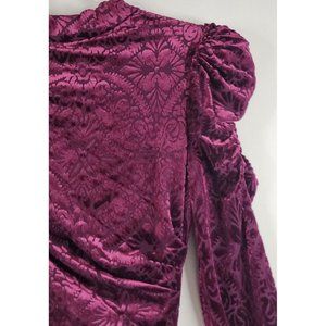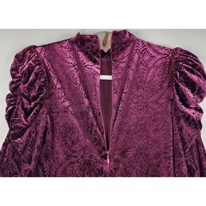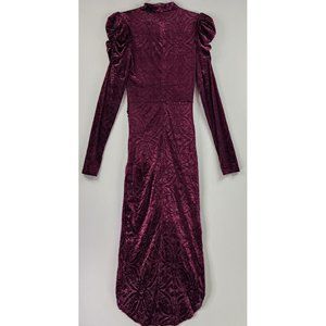 Vici Dress Womens XS Wine Velvet Victoria Anne Puff Shoulder High Low Midi