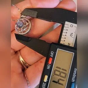 The flower part of this cute pendant spins. The pendant itself is 3/4" by 3/4" and contains a labradorite sphere in the middle.