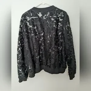 This jacket is great for keeping cool while looking great! Jacket has been worn only a couple of times, no rips, stains or tears. Cute see- through design with elastic cuffs.