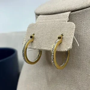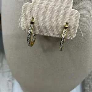 These beautiful vintage Thai .925 sterling silver hoop earrings feature a lovely gold overlay and intricate detailing along the outer edges. The design gives the appearance of sparkling stones, but upon close inspection with a magnifier, it's hard to be 100% sure if they are tiny stones or finely crafted etchings in the silver.