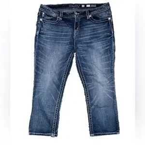 Women's Miss Me Jeans Mid-Rise Easy Crop Pants Sz 36 Plus Size