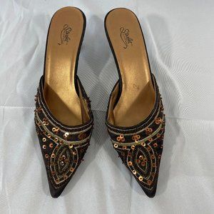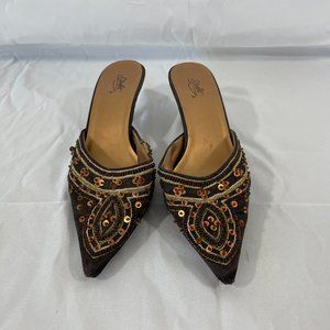 Starlet Brown sequined Kitten Heel Mules 7 1/2 W