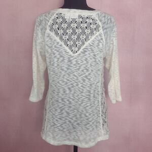 Cato Lace Crochet Detail 3/4 Sleeve Top Size Medium Ivory Cream
