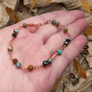 Artisan Copper Wire Wrap Bracelet with African Turquoise Beads