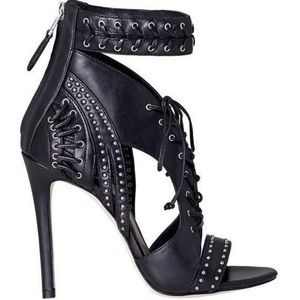 NWOT B Brian Atwood Black Leather Lusia Studded Lace Up Heels