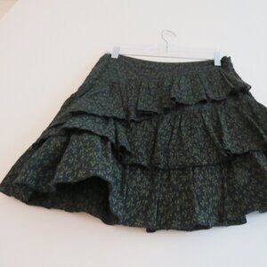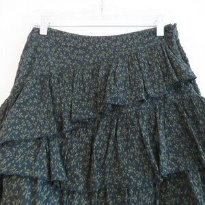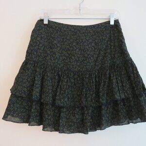 ULLA JOHNSON Ella Tiered Micro Dark Floral Ruffle Crepe Skirt - Size 4