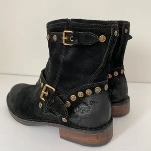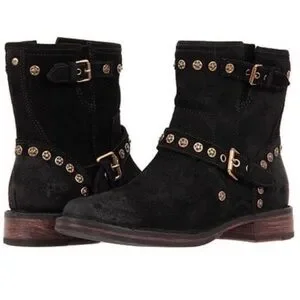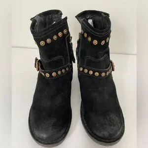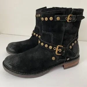 UGG Fabrizia Black Suede Studded Moto Boots 7.5