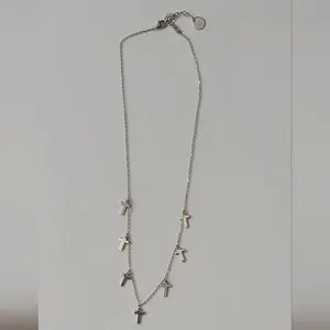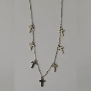 925 sterling silver cross charms necklace 18" euc dainty chain crosses religious