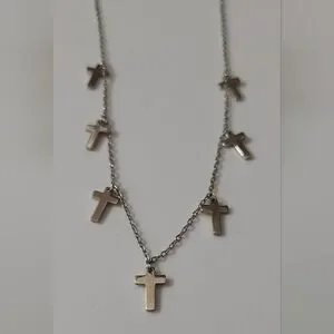 Beautiful 925 sterling chain with cross charms dangling from it, This is 18" long and in excellent condition!