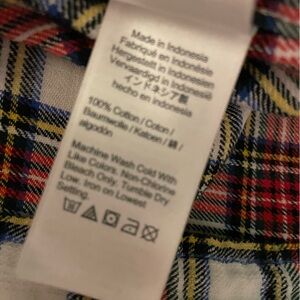 100% cotton plaid flannel shirt. Front button down. Minimally worn and washed.