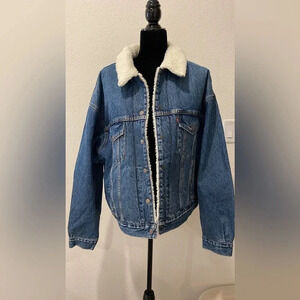 Levis Jacket Mens XL Blue Denim Jean Sherpa Lined Premium Western Trucker NWT