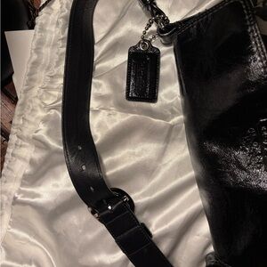 COACH Bleeker 12562 Shoulder Bag Black Patent Leather/Signature Canvas Medium