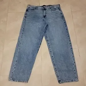 Banana Republic Premium Denim High-Rise Barrel Fit Jeans. Medium Wash. 32L