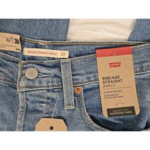Levis Ribcage Ankle Straight Jeans Super High Rise Blue Womens Size 27x27 NWT. Condition is New with tags. Shipped with USPS Ground Advantage.