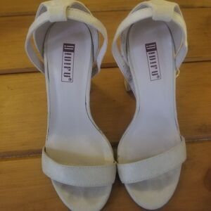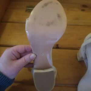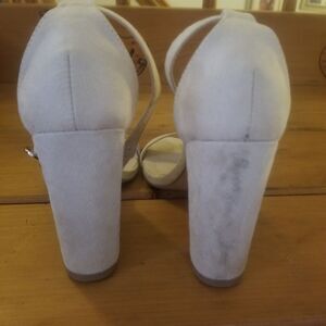 These suede heels were worn once to a wedding. They have a lot of life left in them. There is a stain on the back of one heel but otherwise they are in great condition. Perfect for formal occasions.