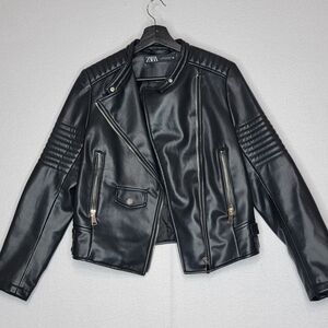ZARA Women's Faux Leather Moto Jacket with Zippers Size M.