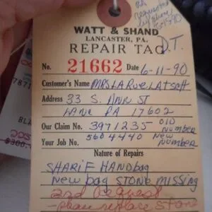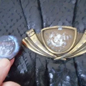 Still has its original tag of $300. The stone on the decorative front has come off. A bit of glue will fix that up. More info in comments