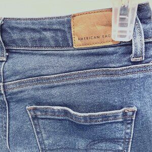 American Eagle Mom Jean-Stretch-Distressed-Skinny/Ankle Denim-Size 00-Blue/White