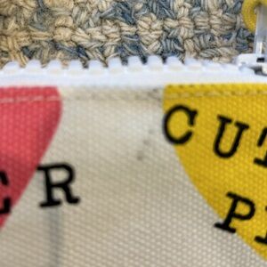 Kerri Rosenthal canvas heart pouch withh zipper.