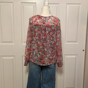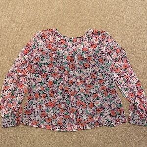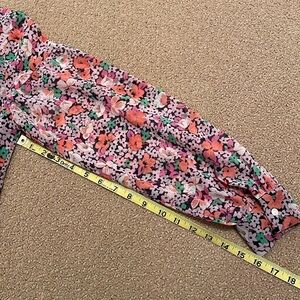 Ann Taylor Blouse Women’s Small Pink Orange Black Babydoll Sheer Floral Overlay
