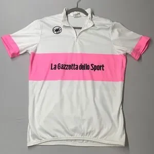 Castelli Sport Italia Men Cycling Jersey XL White Pink La Gazzetta Dello Sport