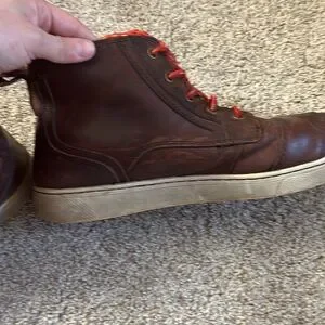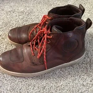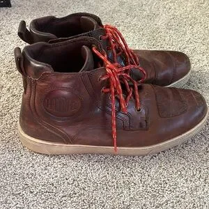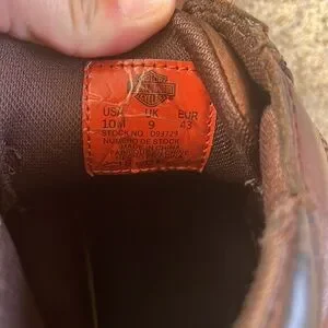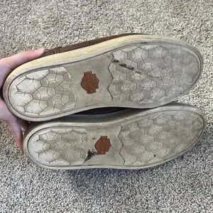 Men’s brown leather Harley Davidson lace up high top shoes.