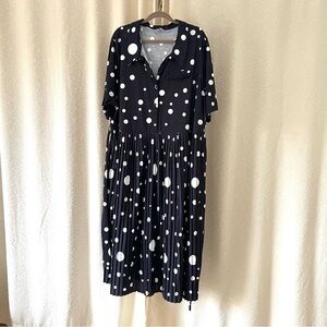 Cute polka dot tie dress with collar and pleated skirt.
