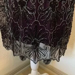 Stunningly, beautiful Pizarro nights size 14 W beaded gown in purple beautiful vintage in great condition. Take her out dress her up maybe even take her to a New Year’s Eve party. She is a beauty.