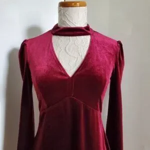 Romeo & Juliet Couture Burgundy Velvet Choker Dress Sz S