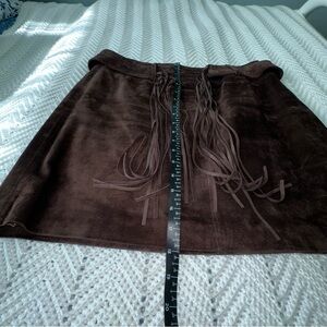 INC chocolate brown Y2K suede skirt with fringe belt-size 12