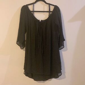 Purple Snow, Black Cold Shoulder Mini Dress, Braided Straps, Lined, Size M EUC, BOHO vibes